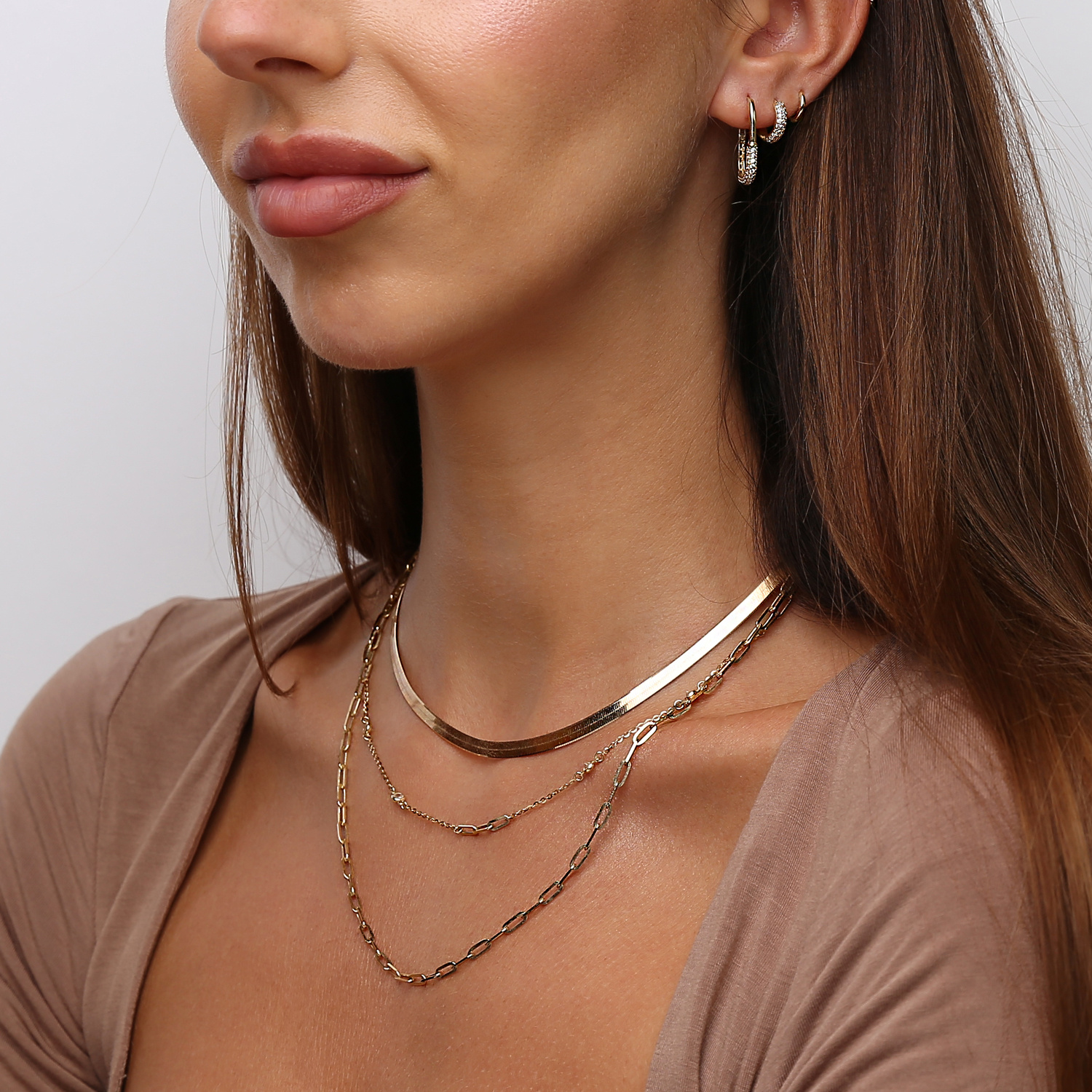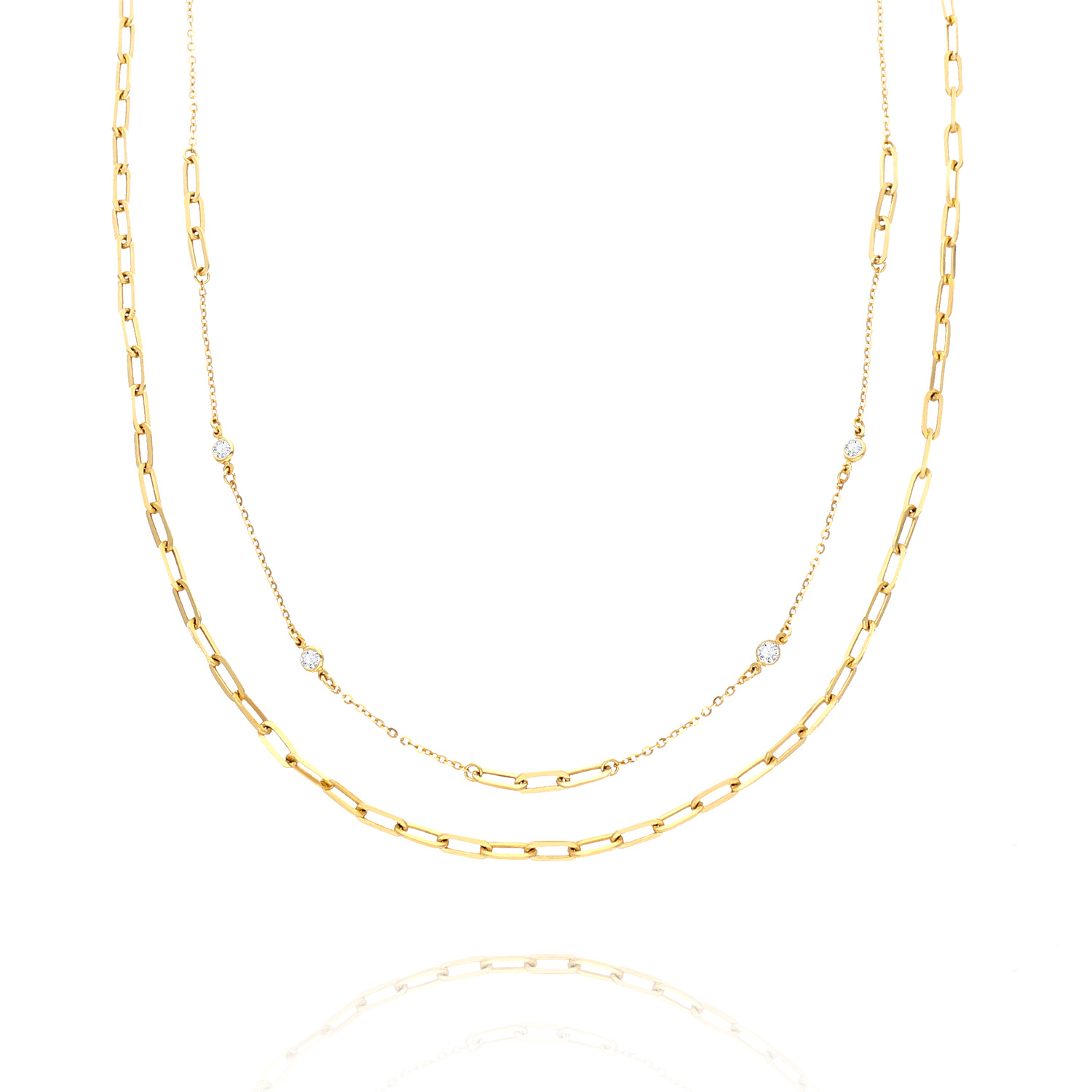 Efektowny złoty podwójny łańcuch o splocie ankierWykonany z najwyższej jakości złota w próbie 585 (14-karatowe), dzięki czemu nie czernieje i nie traci blasku. Łańcuch jest oryginalny i cudownie prezentuje się na dekolcie w codziennych jak i bardziej szykownych stylizacjach. Oprócz noszenia naszyjnika w wersji podwójnej, możliwość odpięcia łańcuszków pozwala na noszenie każdego z nich osobno. Wspaniały pomysł na prezent dla ukochanej osoby na wiele okazji.