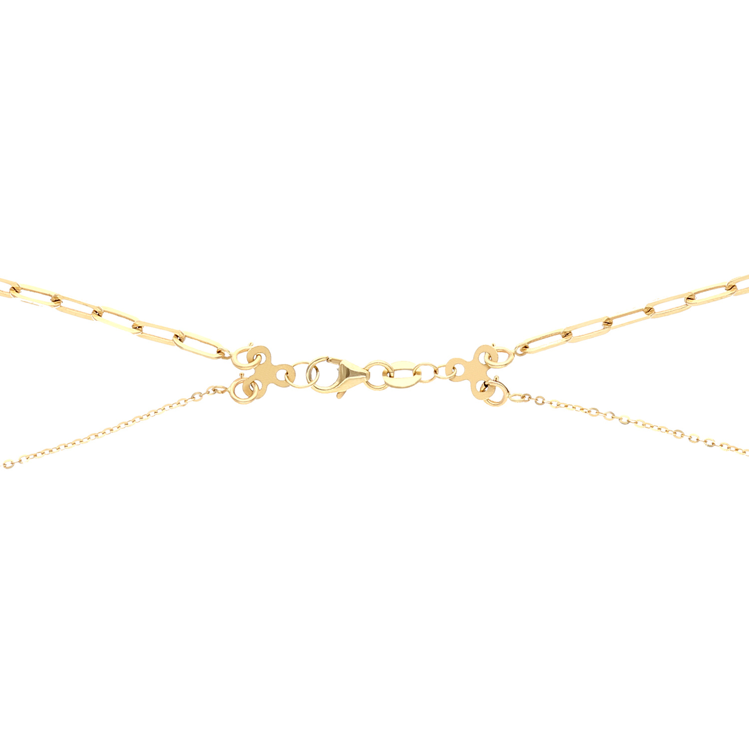 Złoty łańcuszek podwójny naszyjnik 585 splot ankier agrafki paperclip cyrkonie 2w1