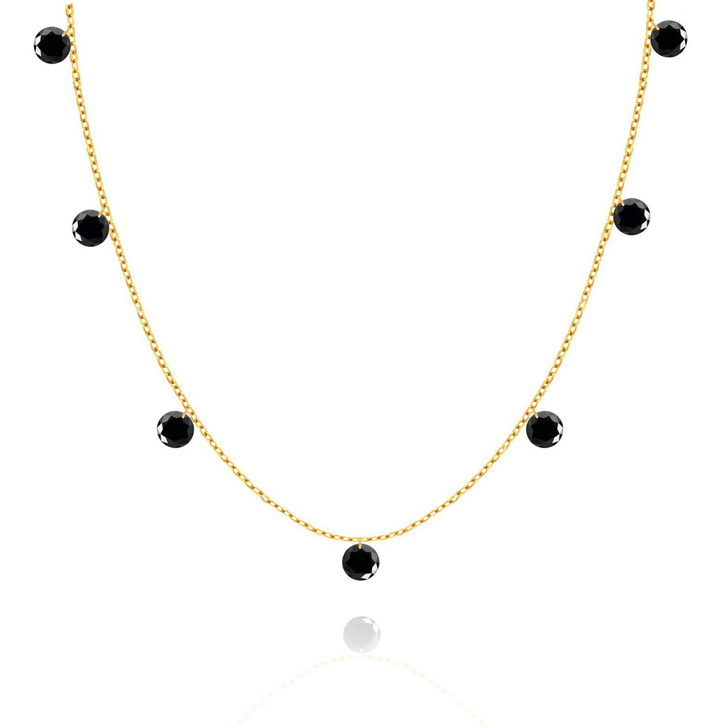 Oryginalny naszyjnik ze złota z czarnymi cyrkoniami. Wykonany z wysokiej jakości żółtego złota próby 585 (14-karatów). Piękny, nowoczesny wzór dla młodych kobiet. Idealny w połączeniu z innymi celebrytkami!
