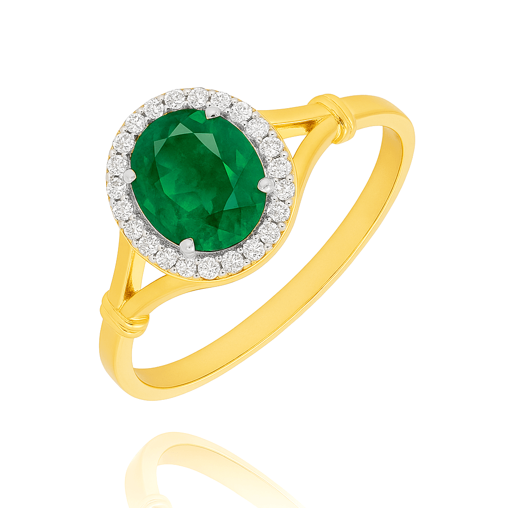 • Pierścionek wysadzany naturalnymi kamieniami szlachetnymi- szmaragdem oraz diamentami. Wykonany z najlepszej jakości złota wysokiej próby 585.