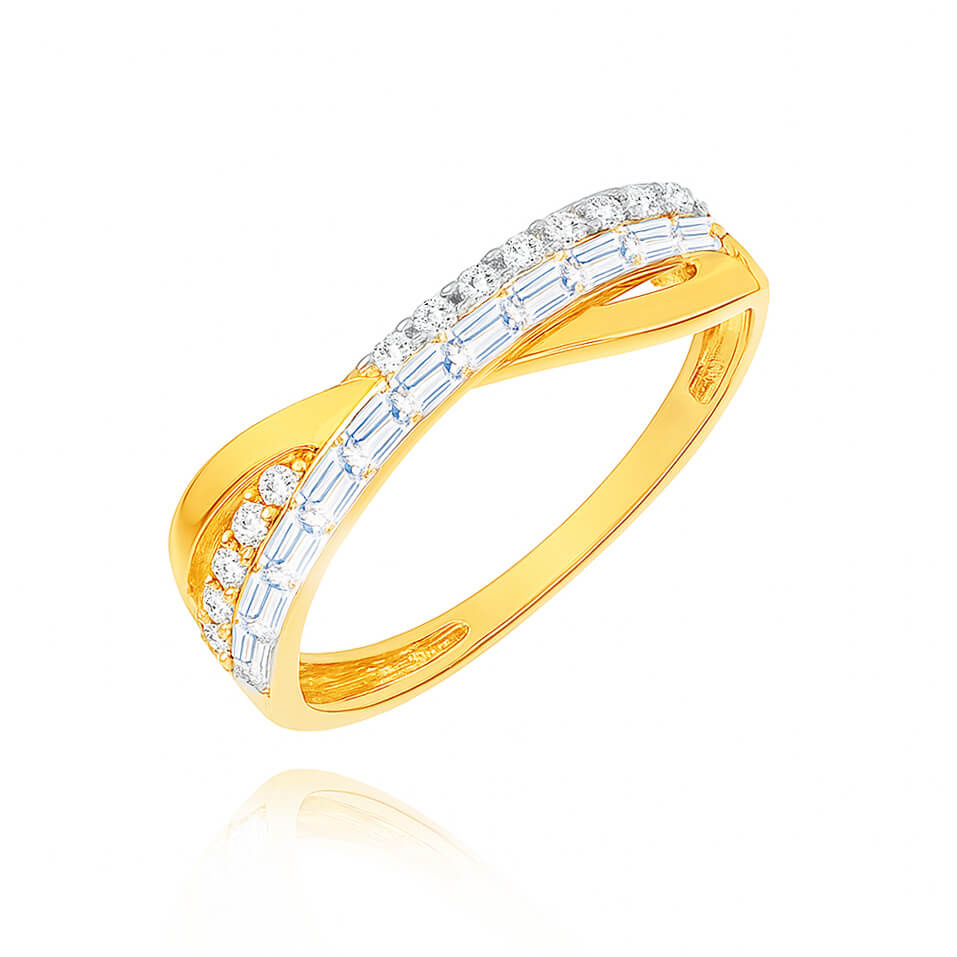 Złoty pierścionek 585 przeplatany z cyrkoniami bagietki