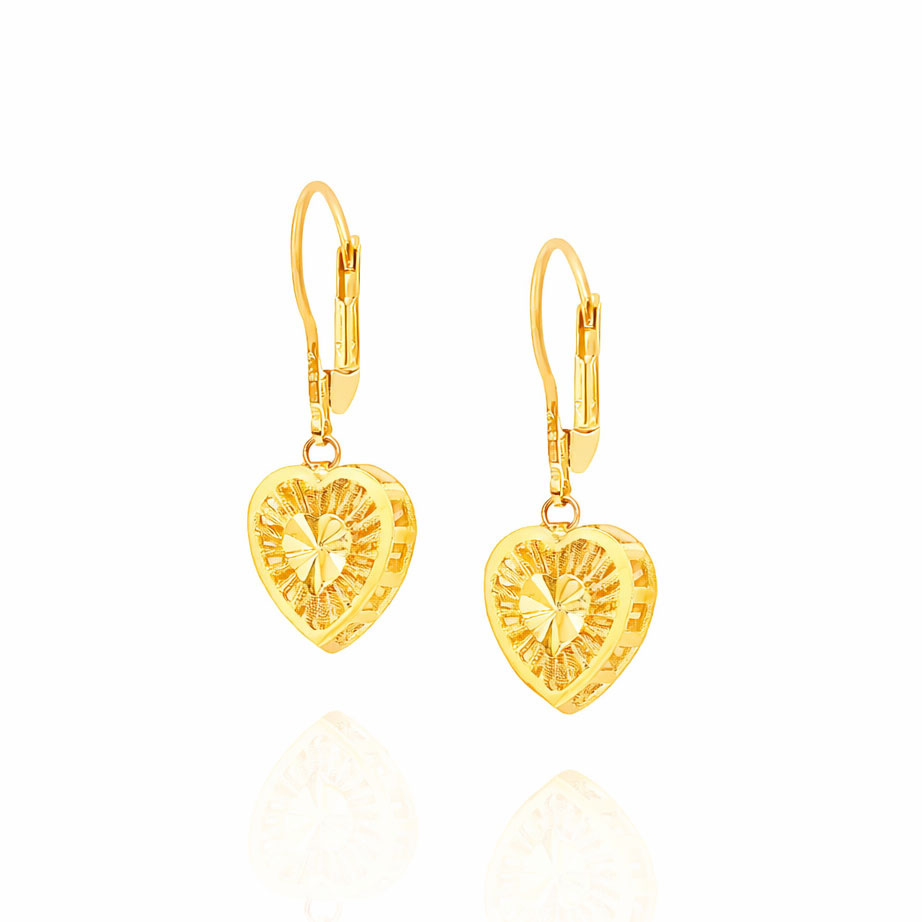 Złote kolczyki serca 585 wiszące ażurowe angielskie zapięcie