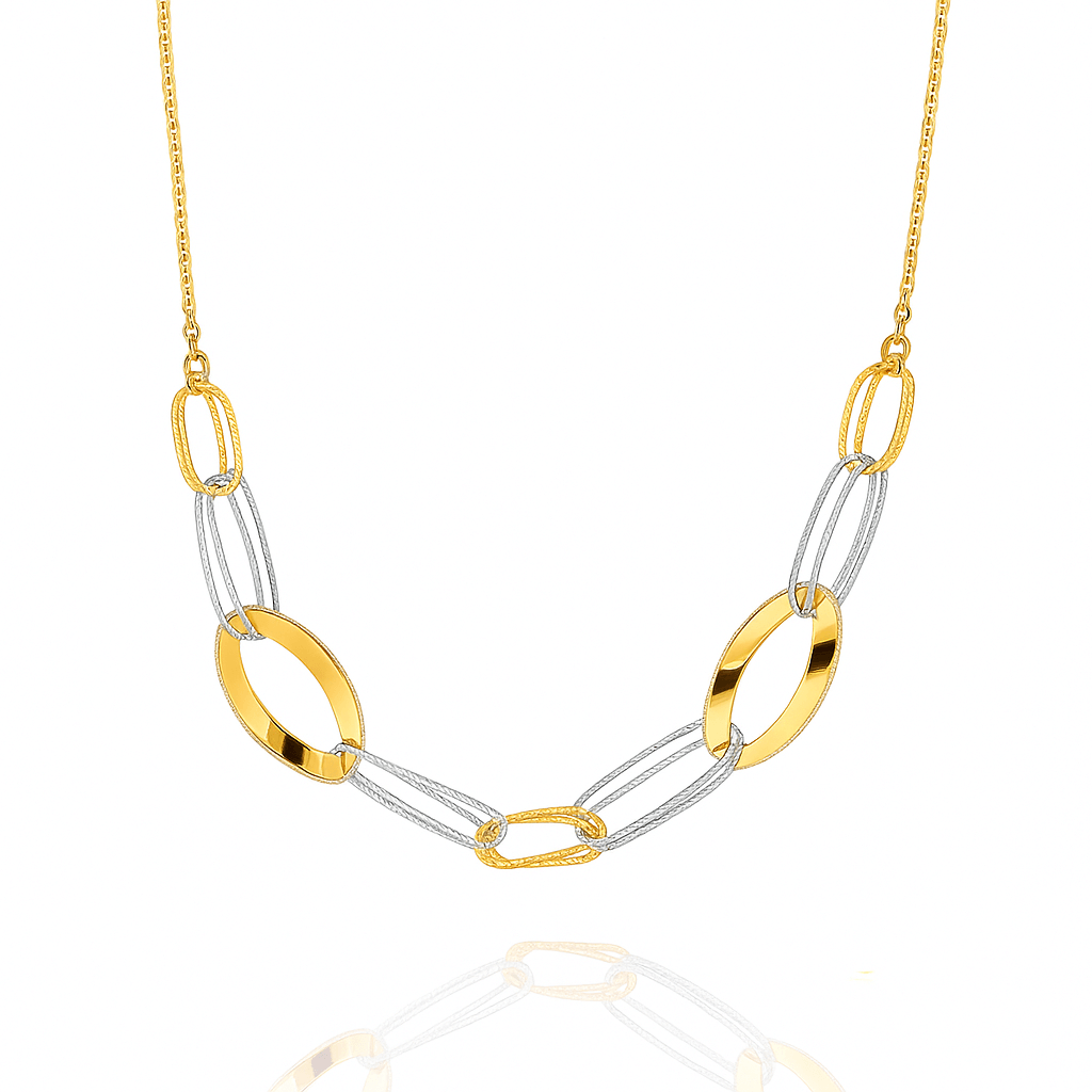 • Wyjątkowy naszyjnik złoty fasetowany, wykonany z białego i żółtego złota wysokiej próby 585 (14-karatowego).