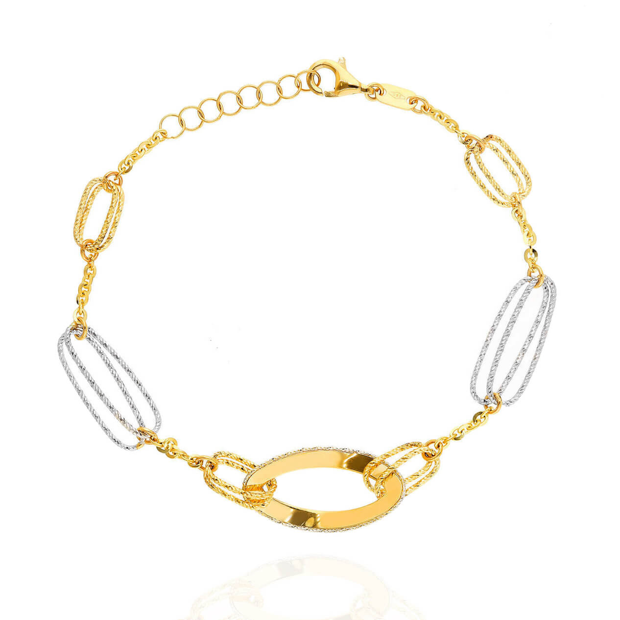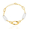 Bransoletka łącząca białe i żółte złoto w formie agrafek i kółek, wykonana ze złota próby 585 (14-karatowego). Elegancka i subtelna biżuteria, która stanowi piękny dodatek do różnych stylizacji.  Taki design łączy w sobie nowoczesność z klasycznym stylem, co sprawia, że jest idealny zarówno na co dzień, jak i na specjalne okazje.