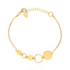 Bransoletka pozłacana z motywem połączonych kółek. Wykonana ze srebra o próbie 925, pozłacana 24-karatowym złotem. Bransoletka posiada regulację, dzięki czemu możesz dopasować długość do swoich preferencji. Bransoletka prezentuje się oryginalnie na ręce. Idealna na wieczorne wyjścia. Występuje w komplecie z naszyjnikiem.
