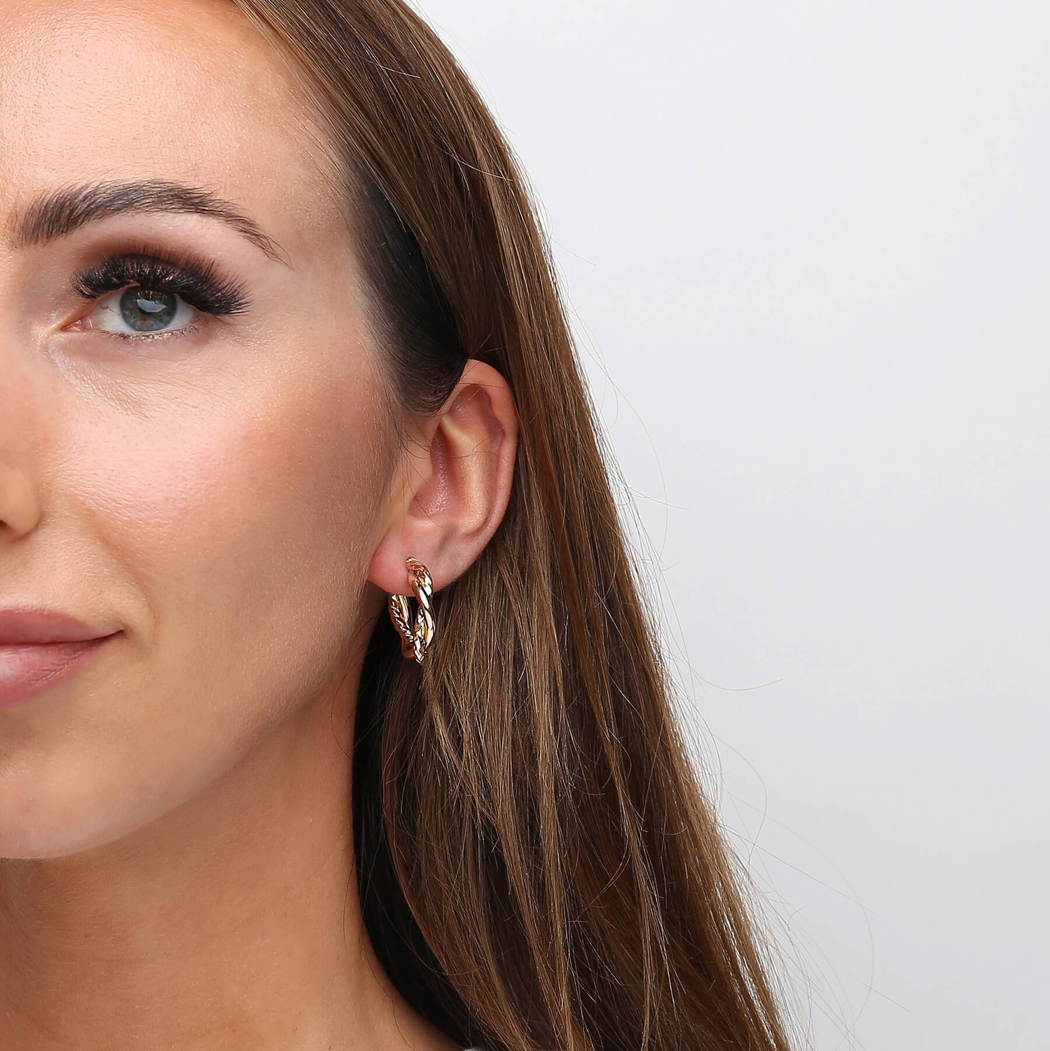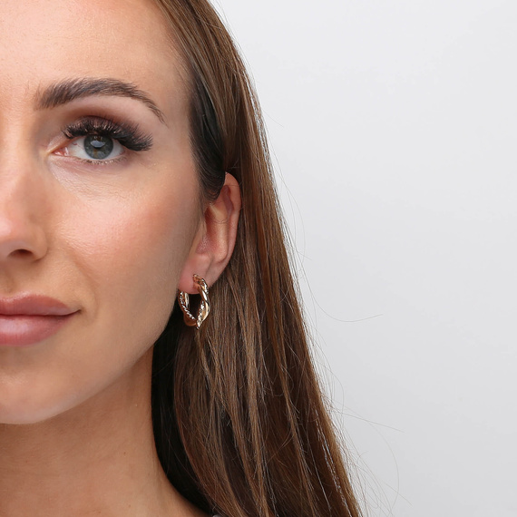 Kolczyki koła przeplatane w połowie gładkie, a w połowie diamentowane i fasetowane, tworzą wyjątkowy efekt wizualny. Wykonane z wysokiej jakości złota próby 585 (14-karatowego). Kolczyki posiadają skręconą formę, która przyciąga uwagę, a precyzyjnie wycięte fasetki nadają im subtelny blask. Dzięki swojej unikalnej konstrukcji, doskonale sprawdzą się zarówno w codziennych stylizacjach, jak i na specjalne okazje, dodając elegancji i charakteru.