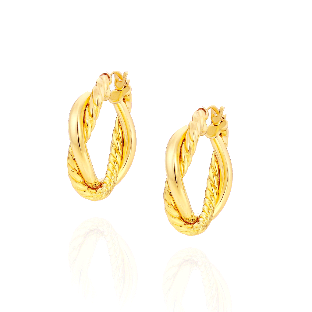 Kolczyki koła przeplatane w połowie gładkie, a w połowie diamentowane i fasetowane, tworzą wyjątkowy efekt wizualny. Wykonane z wysokiej jakości złota próby 585 (14-karatowego). Kolczyki posiadają skręconą formę, która przyciąga uwagę, a precyzyjnie wycięte fasetki nadają im subtelny blask. Dzięki swojej unikalnej konstrukcji, doskonale sprawdzą się zarówno w codziennych stylizacjach, jak i na specjalne okazje, dodając elegancji i charakteru.