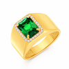 • Masywny złoty pierścionek - sygnet z centralnie osadzoną zieloną cyrkonią o wymiarach 8 mm x 6 mm. Dookoła wysadzany białymi cyrkoniami o średnicy 1mm. Wykonany z najlepszej jakości złota wysokiej próby 585.