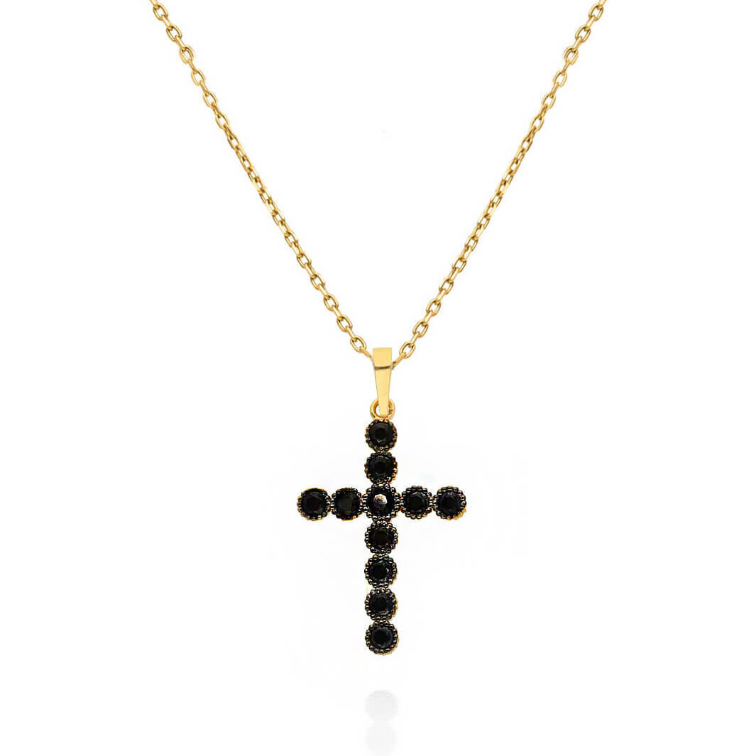 • Subtelna zawieszka do łańcuszka z motywem krzyżyka, zdobionego czarnymi cyrkoniami. Wykonana ze złota wysokiej próby 585 - 14 karatów.