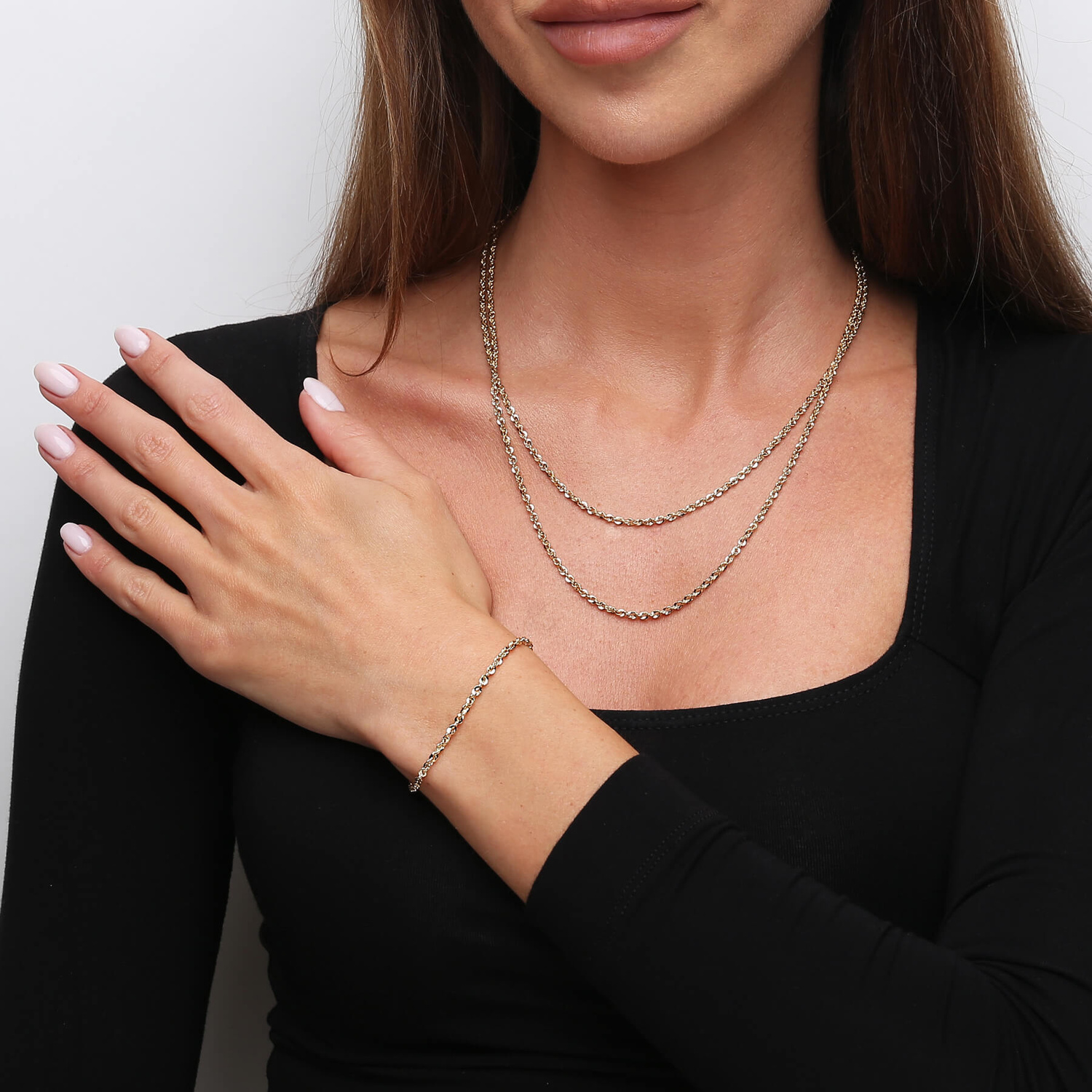 • Złota bransoletka wykonana ręcznie z żółtego złota próby 585 (14 karatów). Splot Irydia przypomina finezyjny kordel, z lekko skręconymi ogniwami, które tworzą efekt trójwymiarowości i delikatnego połysku.
