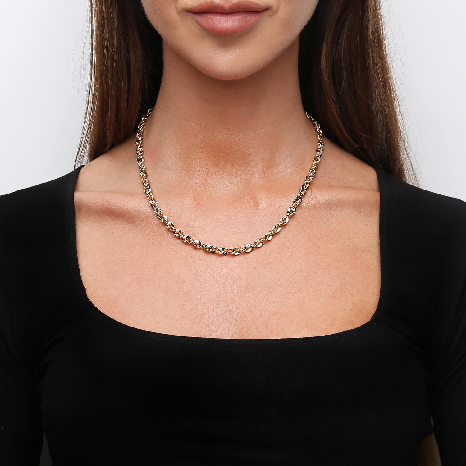 • Złoty łańcuszek wykonany ręcznie z żółtego złota próby 585 (14 karatów). Splot Irydia przypomina finezyjny kordel, z lekko skręconymi ogniwami, które tworzą efekt trójwymiarowości i delikatnego połysku.