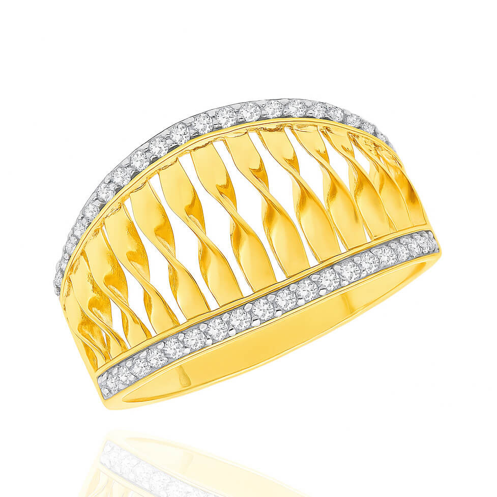 Szeroki pierścionek z ażurowym wzorem, wykonany z żółtego złota próby 585 (14-karatowego), ozdobiony lśniącymi cyrkoniami. Elegancki design, który przyciąga wzrok i podkreśla styl. Doskonale układa się na palcu, tworząc wyrazisty akcent w każdej stylizacji.