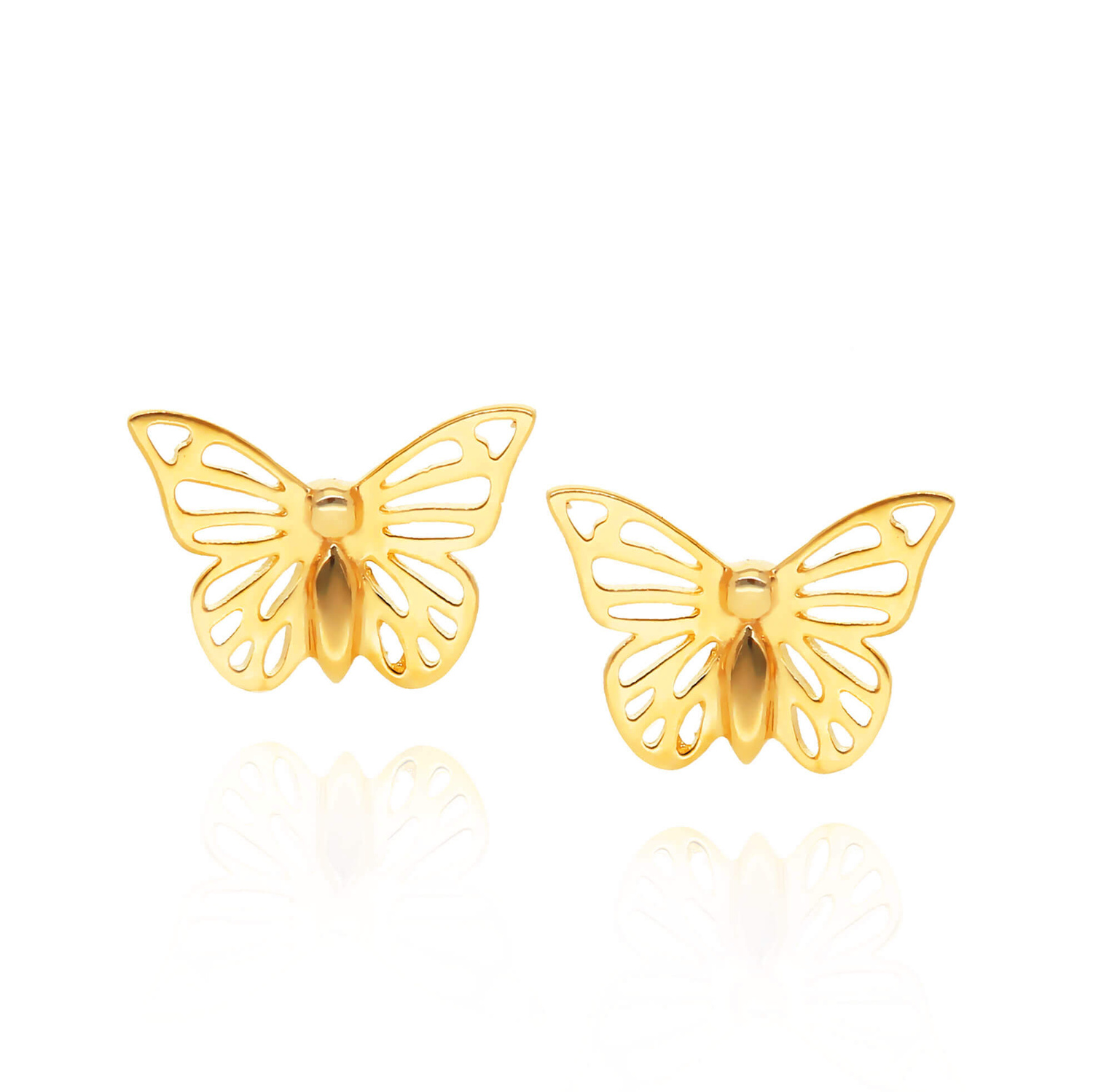 • Złote kolczyki ażurowe motylki zapinane na sztyft. Wykonane z wysokiej jakości złota próby 585 (14-karatowe)