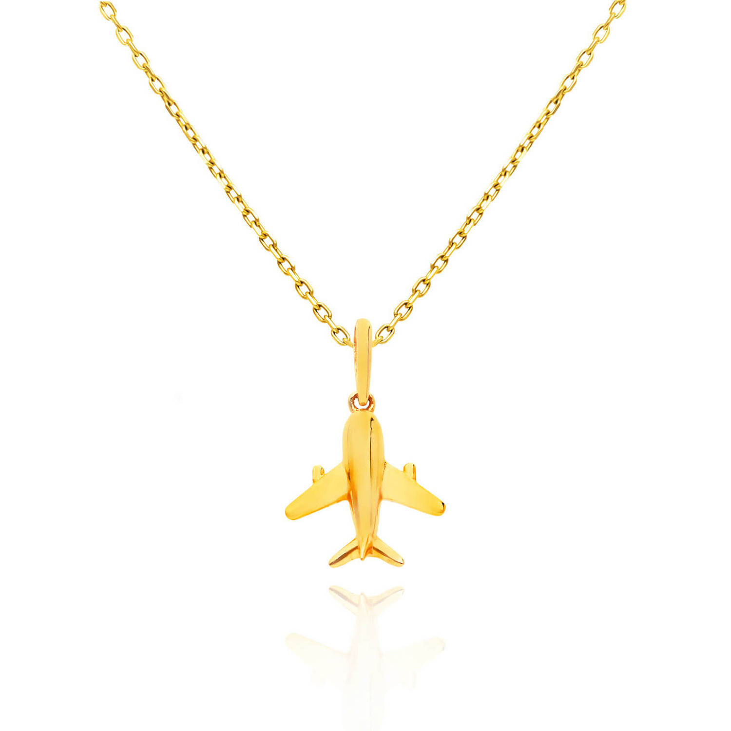 Złota zawieszka gładka w kształcie samolotu. Wykonana ręcznie z najwyższą starannością z żółtego złota próby 585 (14-karatowego). To idealny prezent dla miłośniczek podróżowania . Tworzy wspaniały komplet z łańcuszkiem o splocie lisi ogon, singapur.