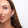 Kolczyki w kształcie podwójnych kropli zapinane na sztyft. Wykonane ze srebra o próbie 925. Krople w biżuterii to najbardziej popularny motyw w tym sezonie, chętnie noszony przez influencerów i gwiazdy show-biznesu.