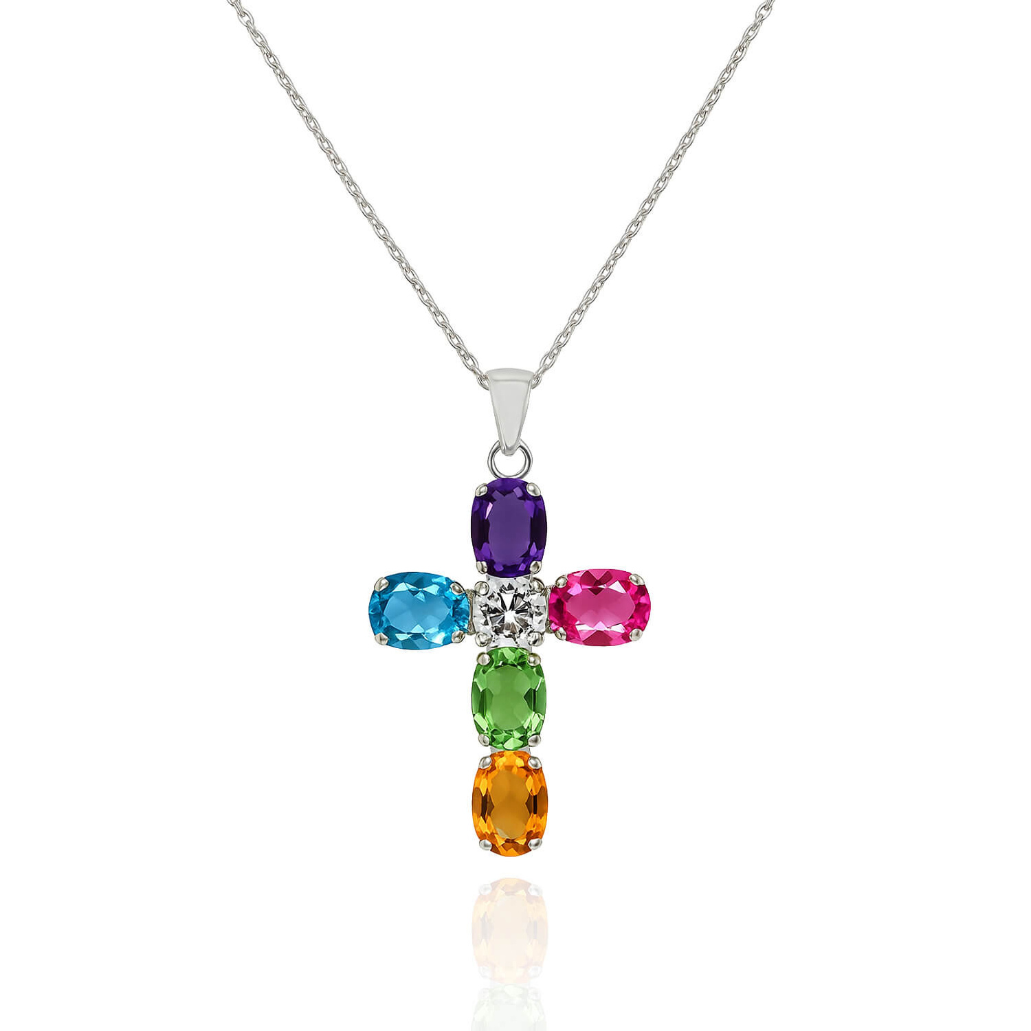 Srebrny naszyjnik 925 krzyż kolorowe cyrkonie 40-45 cm