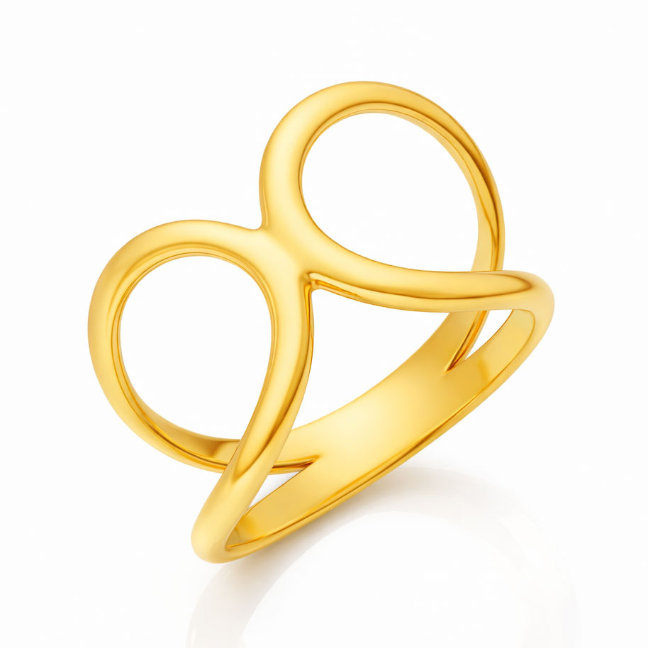 Wyjątkowy, geometryczny pierścionek, wykonany ze złota próby 585 (14-karatowego). Jego otwarta, ażurowa forma, złożona z dwóch połączonych okręgów, nadaje mu lekkości i nowoczesnego charakteru. Subtelna, a zarazem wyrazista forma sprawia, że pierścionek pięknie prezentuje się zarówno w codziennych stylizacjach, jak i jako wyjątkowy dodatek na specjalne okazje. Idealny wybór dla kobiet, ceniących minimalistyczną, ale efektowną biżuterię.