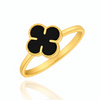 • Złoty pierścionek 585 koniczynka kwiatek czarny onyks