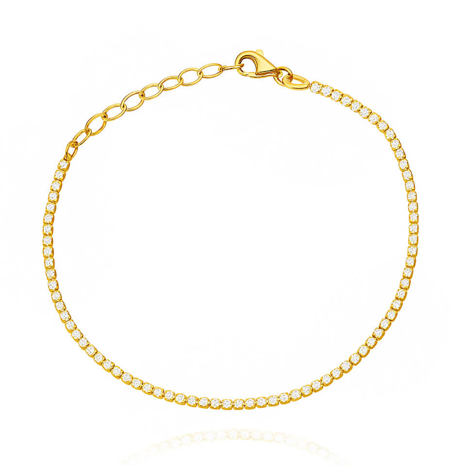 • Subtelna bransoletka wykonana z wysokiej próby złota 585 (14-karatowego), zdobiona rzędem błyszczących białych cyrkonii.