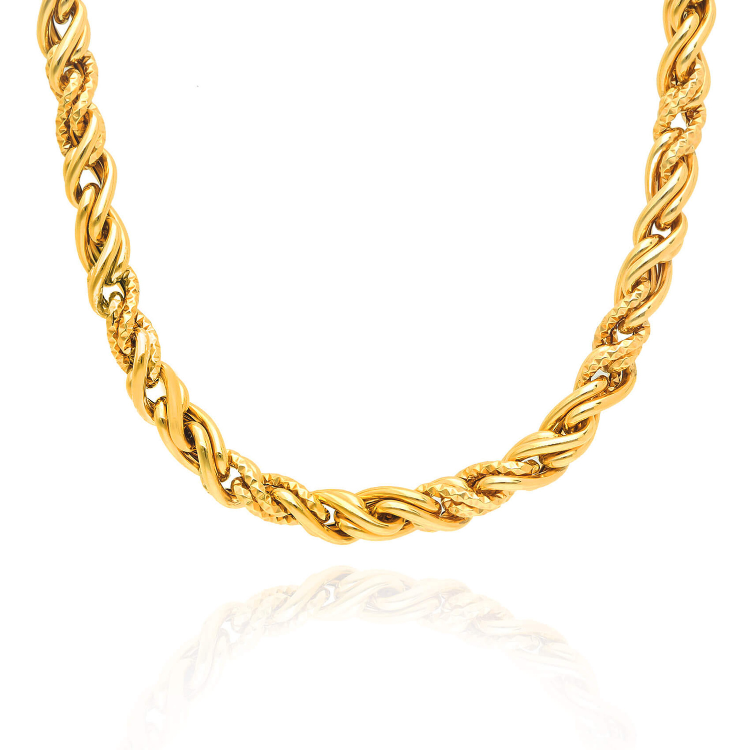 • Bogaty naszyjnik o splocie korda, wykonany z wysokiej jakości złota próby 585 (14-karatowego). Charakterystyczny, skręcany splot nadaje mu wyjątkowy połysk i trójwymiarowy wygląd, który pięknie prezentuje się na szyi.