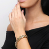 • Masywna bransoletka wykonana ze złota próby 585 (14-karatowego) o niezwykle szlachetnym charakterze. Jej gładkie, połyskujące ogniwa tworzą harmonijną całość, która zachwyca precyzją wykonania i ponadczasowym stylem.