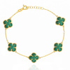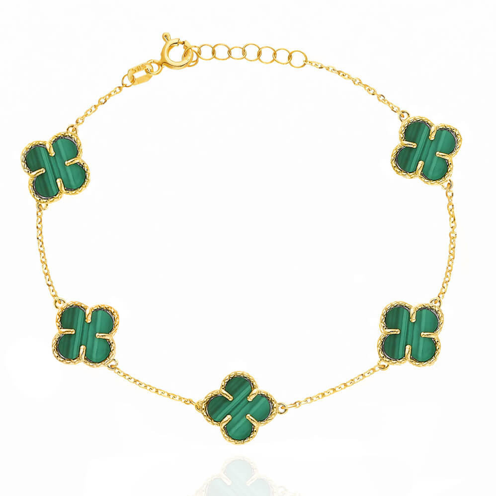 • Bransoletka złota koniczynki 585 naturalny kamień malachit 5 koniczynek 10 mm