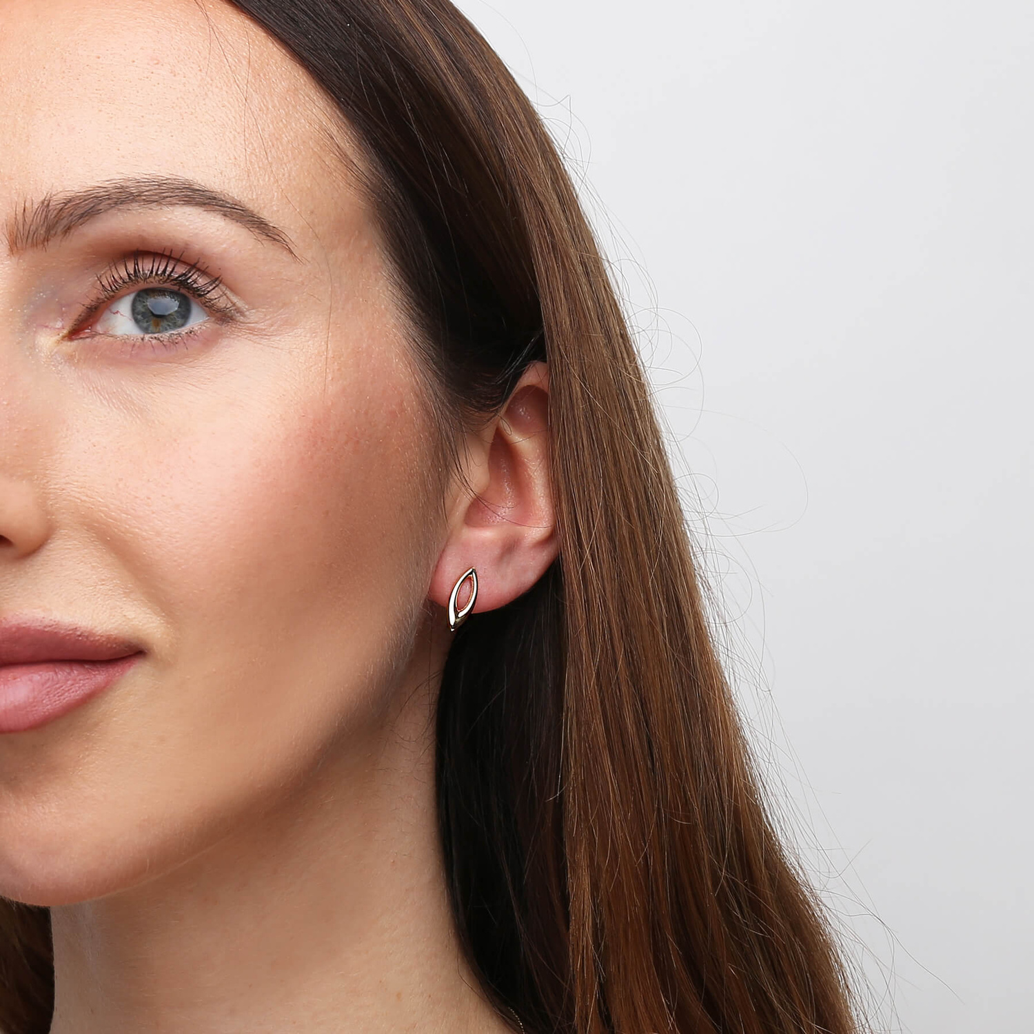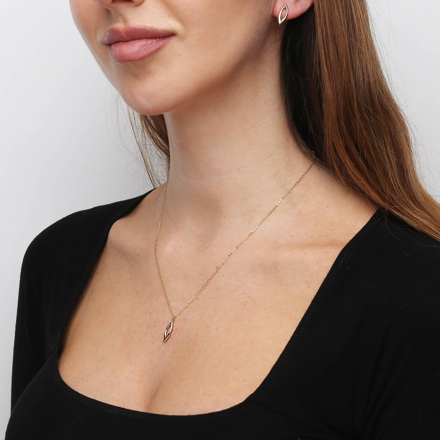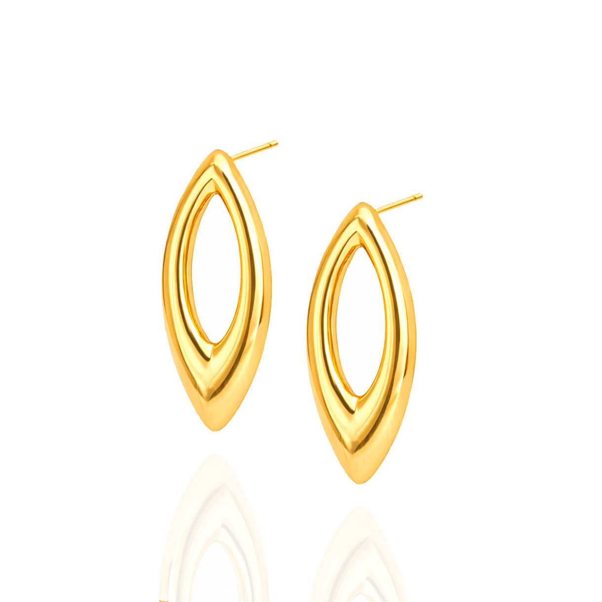 Złote kolczyki łezki na sztyft, wykonane z wysokiej jakości złota próby 585 (14-karatowego). Zaprojektowane z myślą o kobietach ceniących nowoczesną formę i ponadczasowy styl. Otwarta, smukła konstrukcja nadaje im wyjątkowej lekkości, a gładka, złota powierzchnia pięknie odbija światło, podkreślając subtelny blask biżuterii. Kolczyki występują w komplecie z naszyjnikiem.