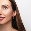 Eleganckie kolczyki wykonane z wysokiej jakości złota próby 585 (14-karatowego), które zachwycają subtelnym blaskiem i ponadczasowością .Górną część stanowi gładka złota tarcza, ozdobiona delikatnym, skręcanym rantem. Z niej swobodnie opada krótki łańcuszek, zakończony dwoma lśniącymi złotymi kuleczkami oraz perłą zamkniętą w złotej oprawie.  Kolczyki są lekkie i wygodne, zapinane na klasyczny sztyft, dzięki czemu doskonale sprawdzą się zarówno na co dzień, jak i na wyjątkowe okazje. Występują w komplecie z naszyjnikiem.