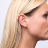 Złote kolczyki kółka na zatrzask, wykonane ze złota próby 585 (14-karatowe). Fasetowane w żółtym złocie, pięknie mieniące się w słońcu oraz satynowane w białym złocie. Krawędzie kolczyków są kwadratowe. Wspaniały pomysł na prezent dla ukochanej.