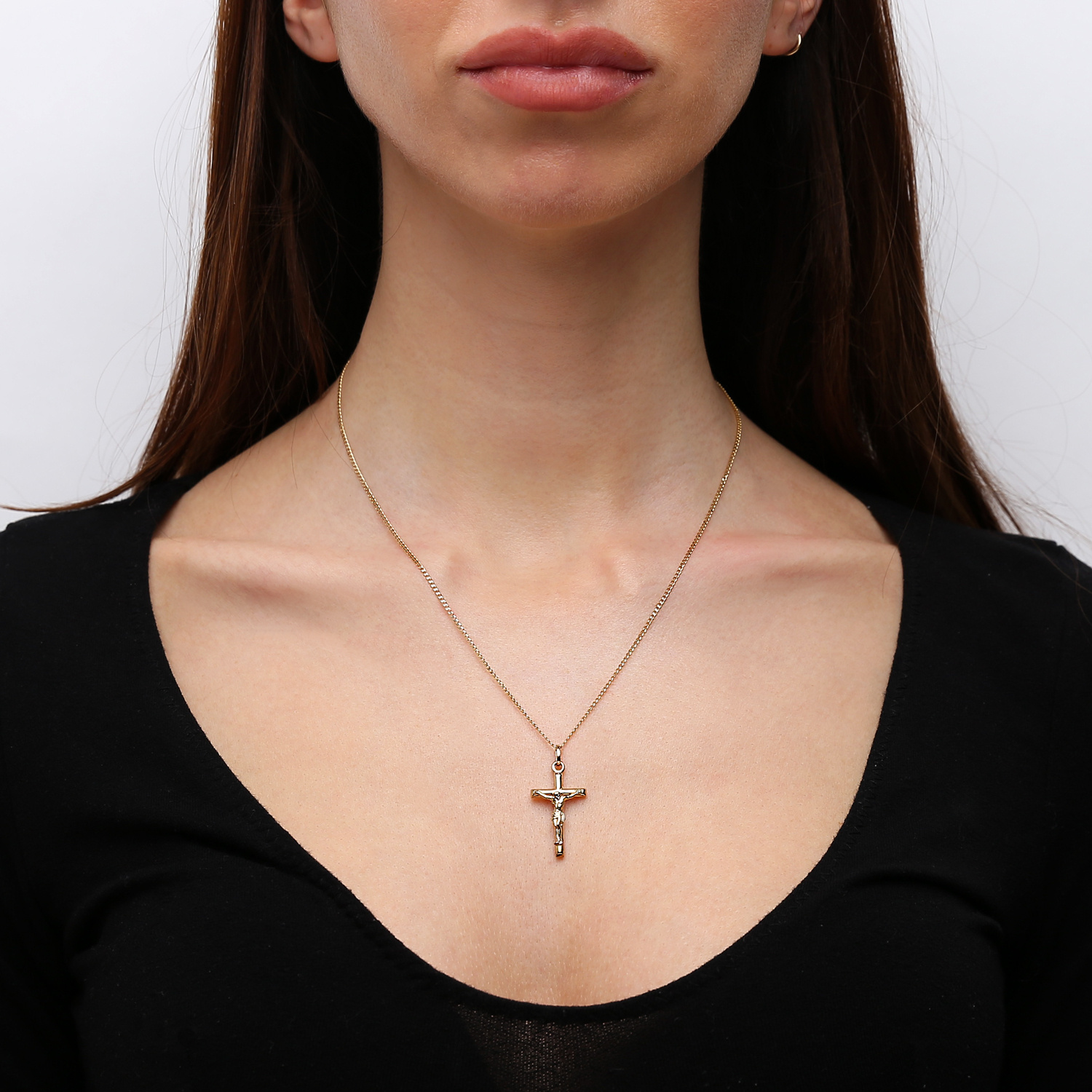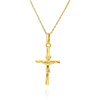 Złota zawieszka gładki krzyż z wizerunkiem Jezusa Chrystusa, wykonany z żółtego 14-karatowego złota (próba 0.585). Klasyczny, prosty krzyżyk jest idealną pamiątką na Chrzest Święty lub Pierwszą Komunię Świętą. Do zawieszki idealnie pasuje łańcuszek ankier lub pancerka o szerokości od 1 mm do 2,5 mm max.